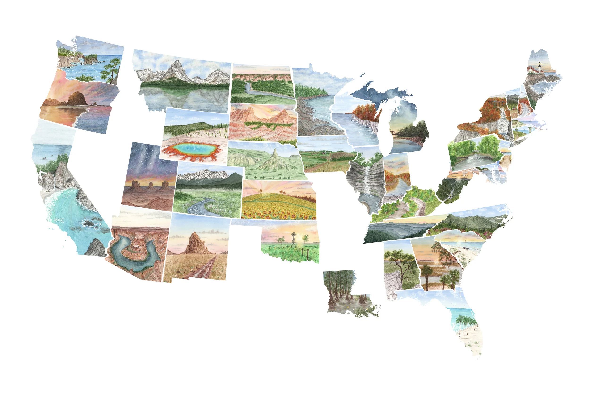 I often get asked why I didn’t paint DC too but this map was meant to focus on landscapes and the gems from each state. A DC painting may be in the future!