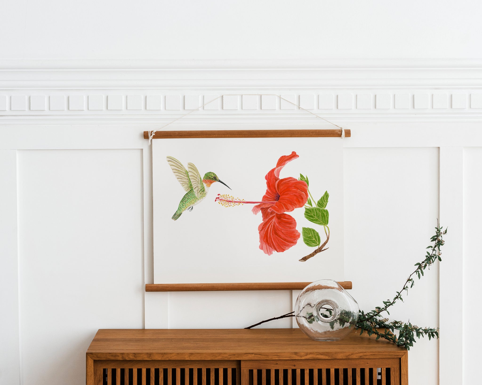 Humming Bird & Hibiscus Print | Watercolor Humming Bird Painting