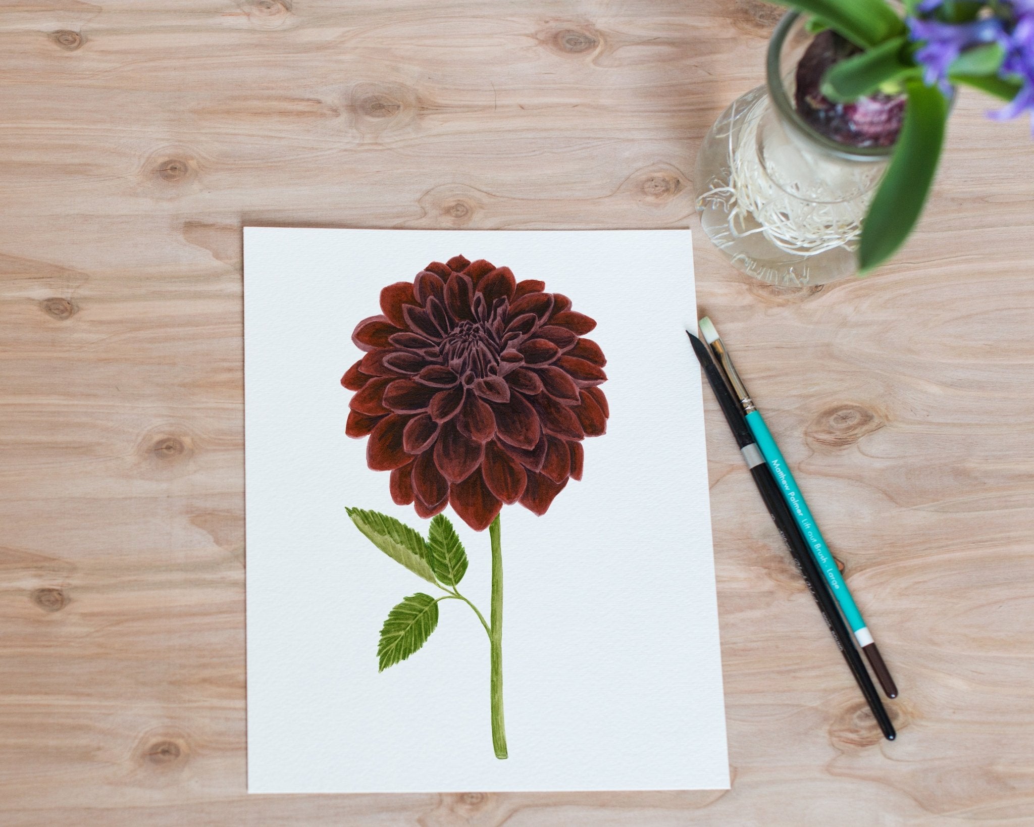 These Fine Art Prints are printed from my original watercolor painting on high-quality fine art paper. This Dahlia has a realistic look known as the Black velvet the beautiful reds and chocolate tones make a statement. Great home decor for a nursery, office, bedroom or living room.