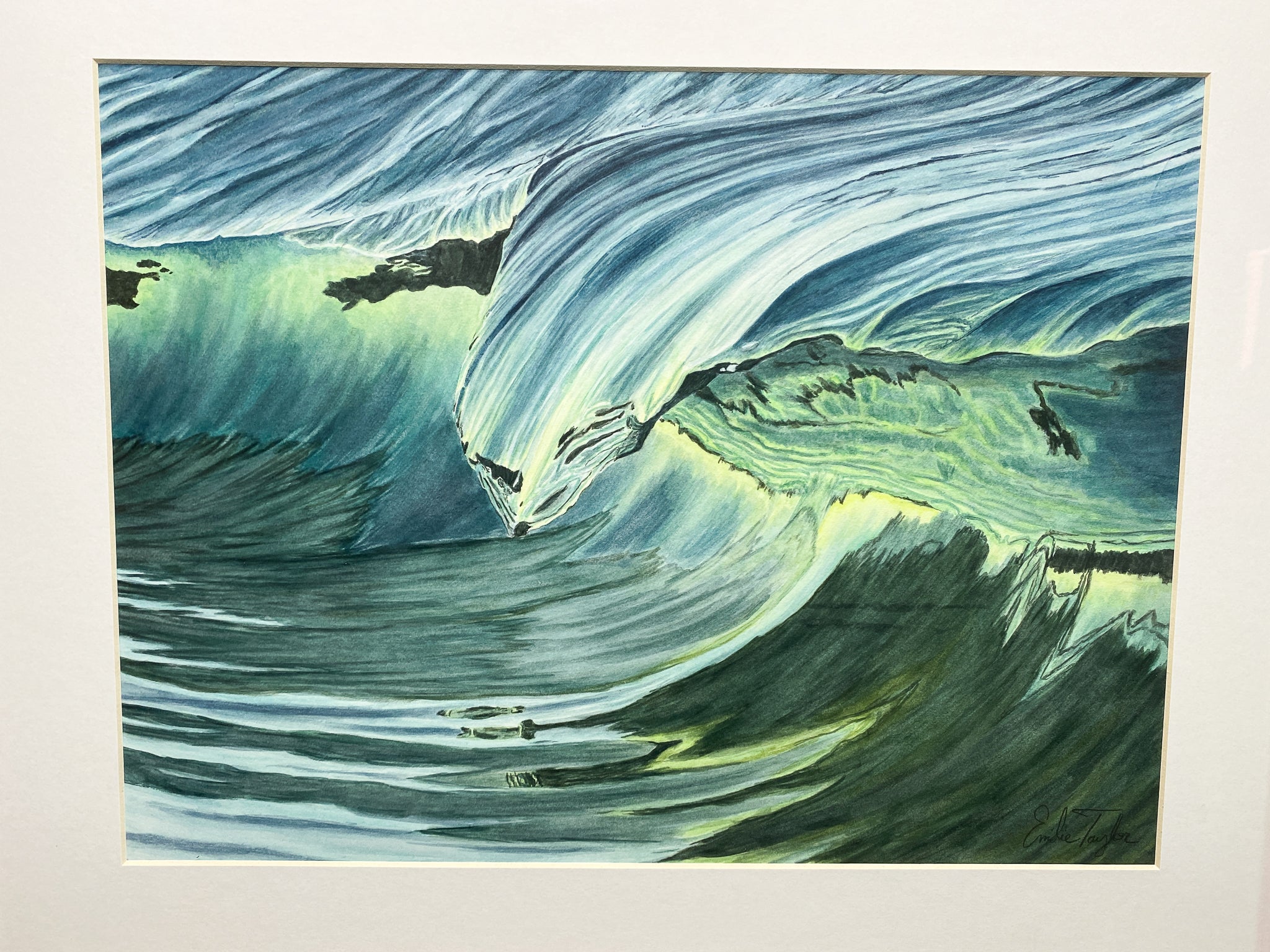 The painting is sign in ink. The Mat is signed, plus has the date the painting for finished and the name.