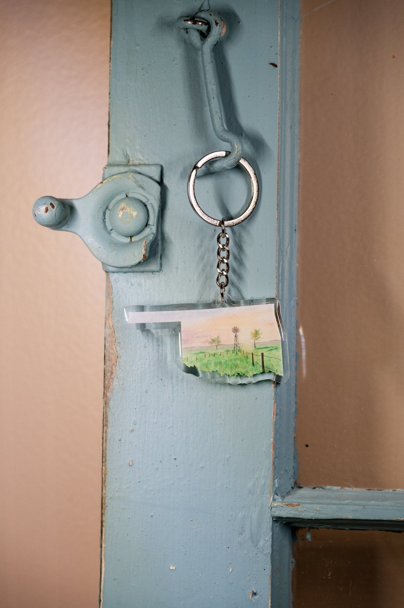 Oklahoma Keychain, Farmlands of OK Keychain, Oklahoma Artwork Souvenir