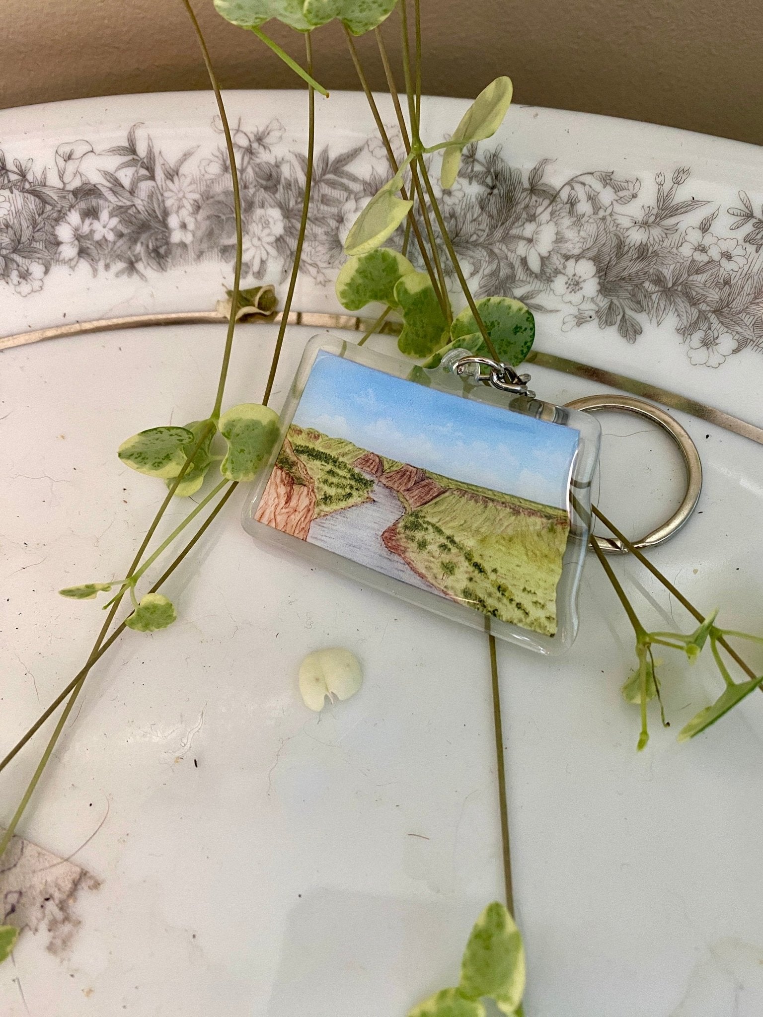 My Watercolor State paintings are now Keychains! Their acrylic so their hardy but lightweight. The epoxy top is so smooth and crystal clear! The colors are a beautiful pop! Would make a great gift for any ND lover!