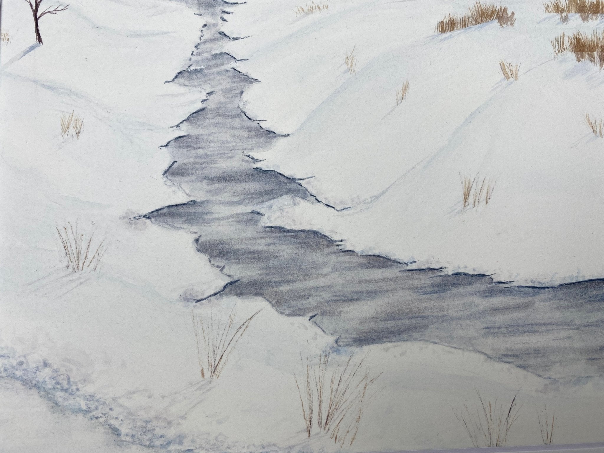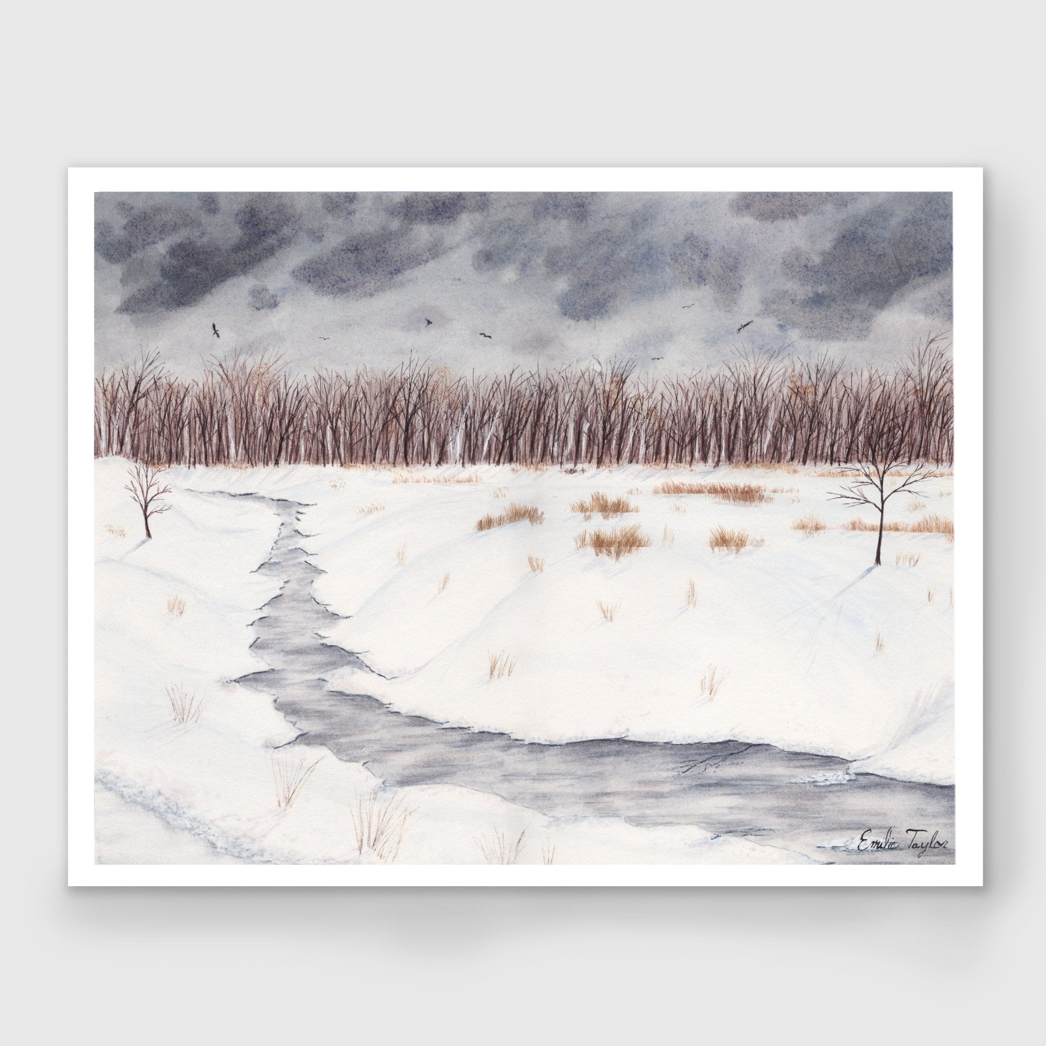 This painting was inspired by a trail I walk with my family. Getting out walking in nature is important to me, even in the cold of winter there is always beauty to be found!