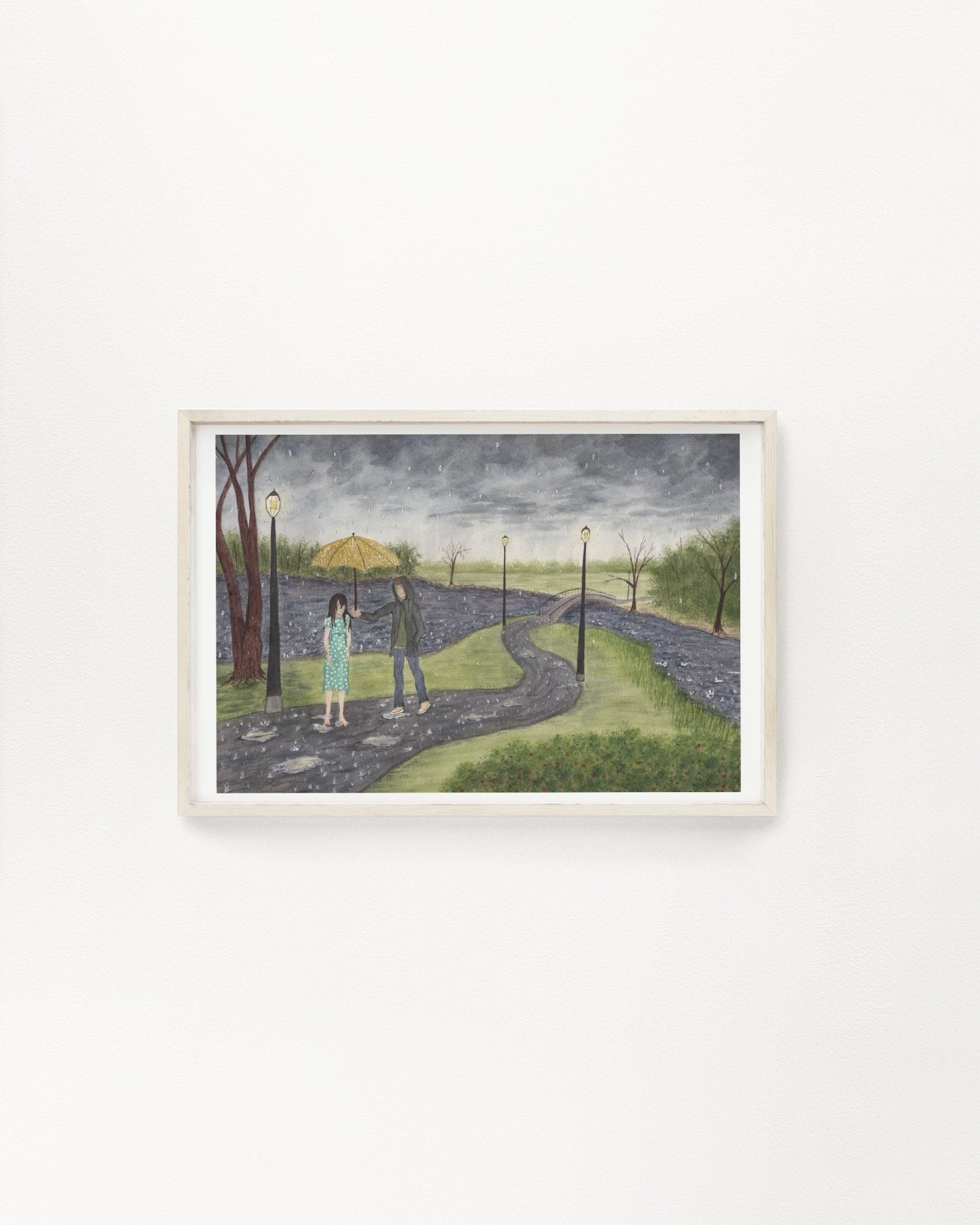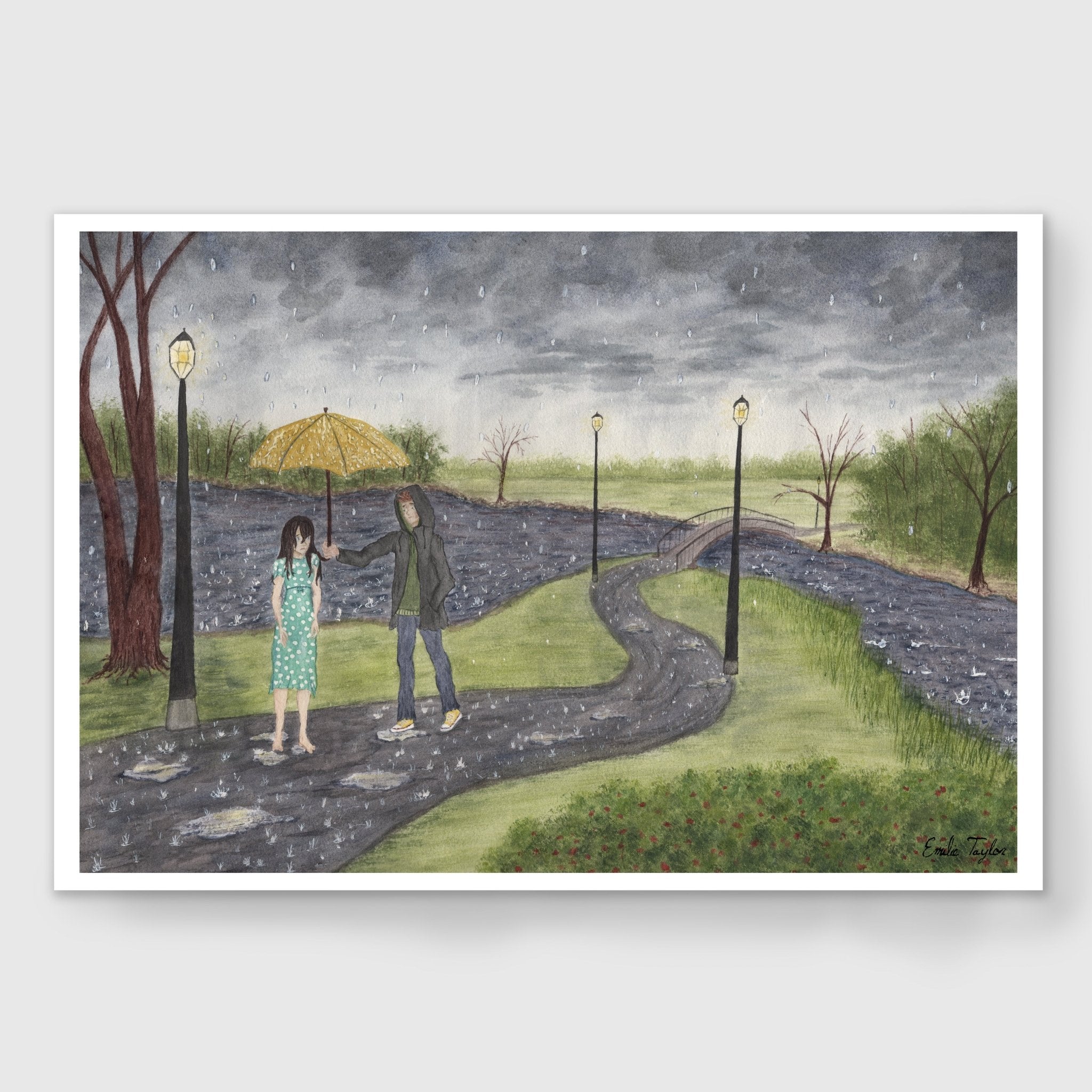 The very first of this took shape in my head as just the people, Someone offering an umbrella to a friend that’s in a hard place. But I don’t draw people and I had no idea if they could even convey the emotions I wanted. So enlisted a partner. My sister Elizabeth was kind enough to lend her help even when I was a bit picky! It was cool to watch my project take its first shape in her hands and become a piece of her heart too.