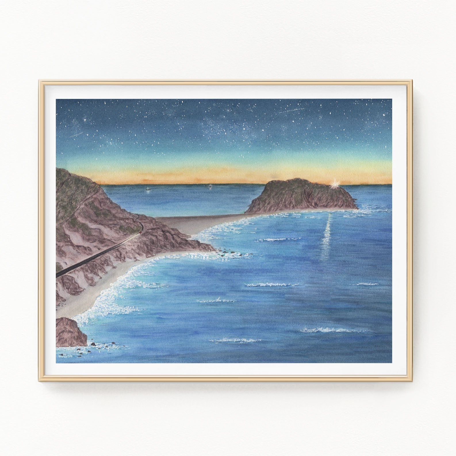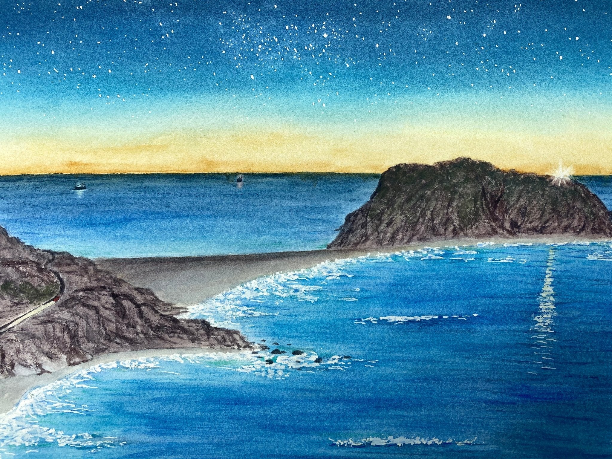 “Point Sur” if you’ve ever been out in the Big Sur area you may recognize this little coastal scene. My family took a trip to California back in 2016. We got to see Humpback whales feeding right from Pfeiffer Beach! We were making our way back to Monterey at dusk and pulled off to photograph Point Sur light house. My photo was terrible 😂 but I got to paint it how I remembered it!