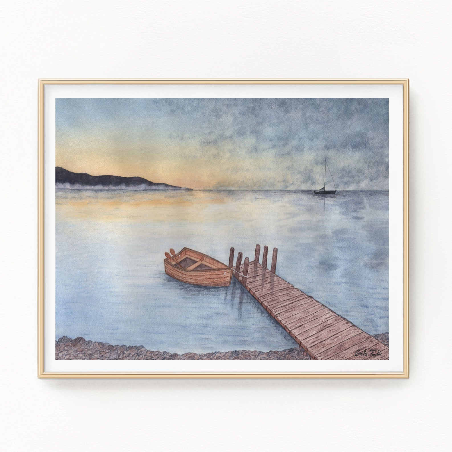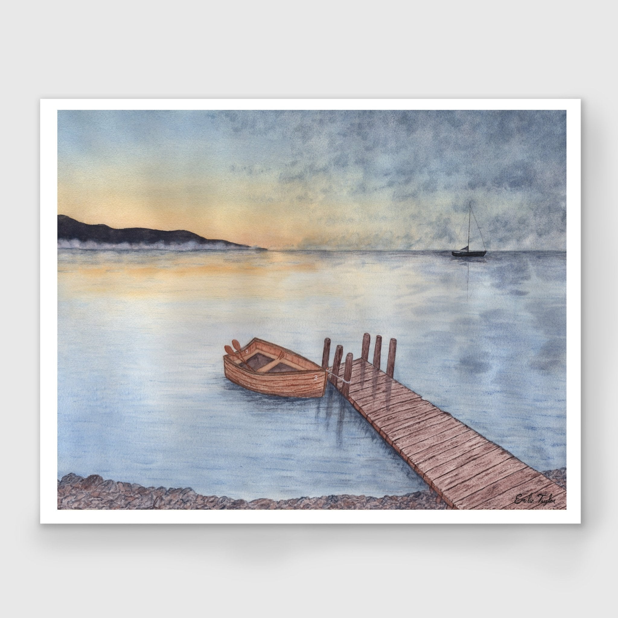 Rowboat #3 was inspired by piecing 3 images together so it felt fitting to make the rowboat the number three. I loved painting the weathered dock for this painting. As part of the Solace and Serenity Collection this painting feels like a place you'd go to recharge.