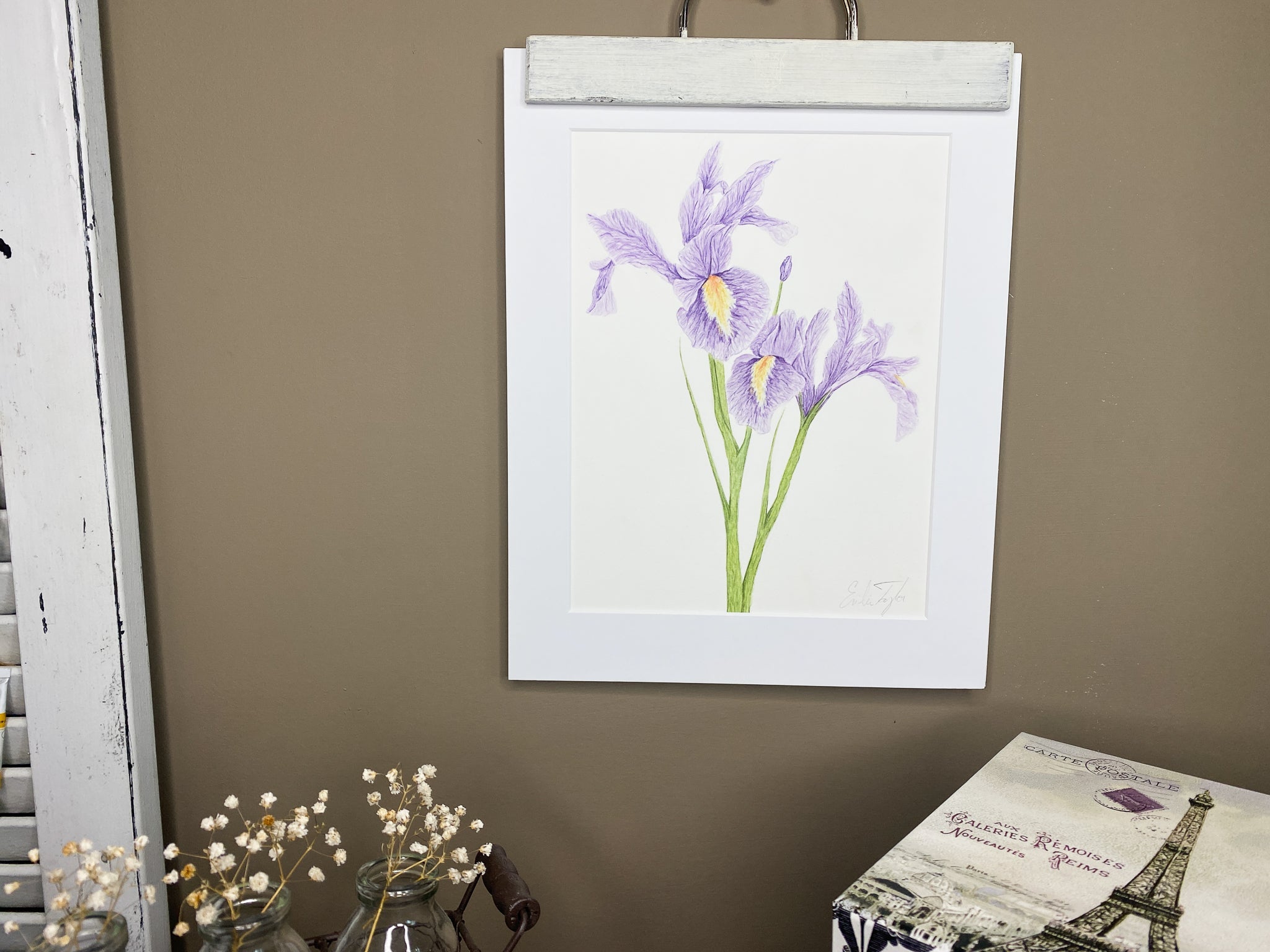 Purple Iris Original Painting Mated to size 11x14