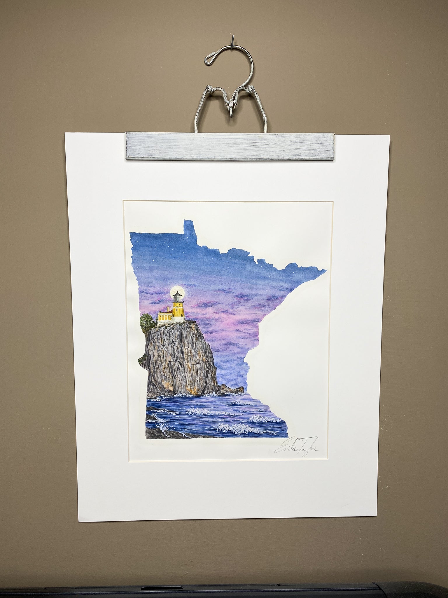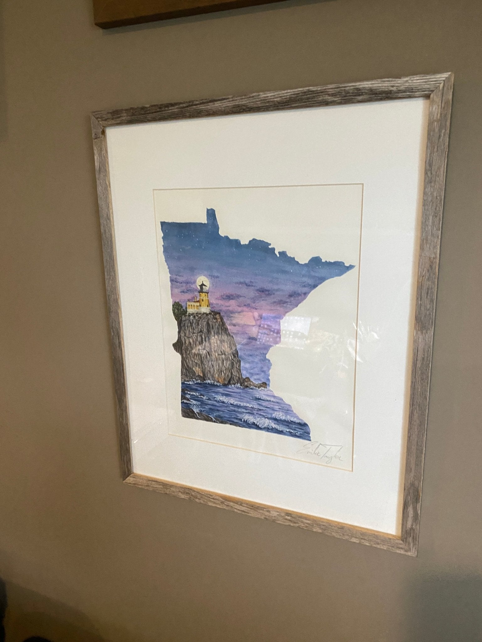 Split Rock Lighthouse Minnesota Original Painting Mated and framed to size 16x20