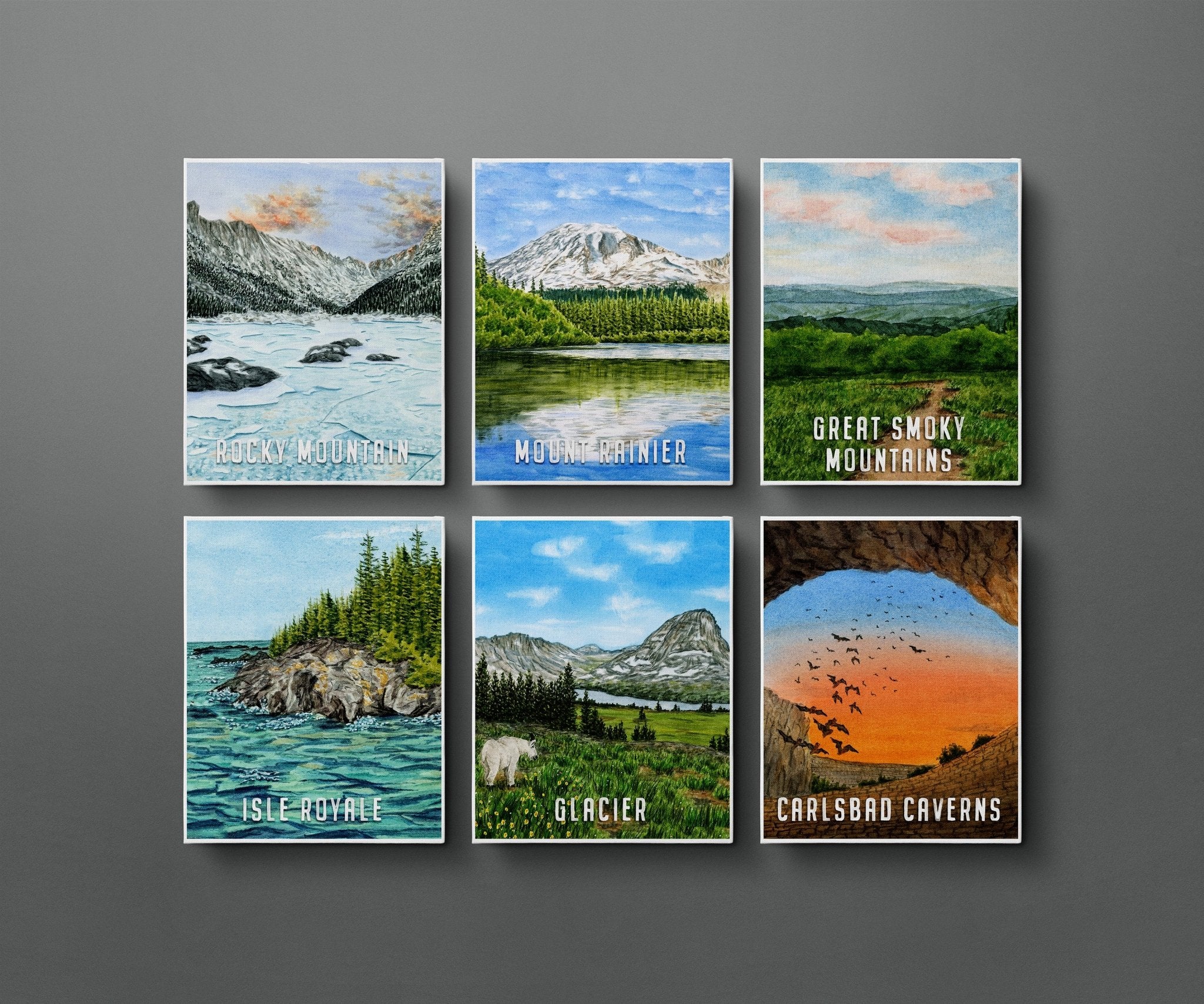 My National Park series began along with the 50 states series back in 2019 before I ever knew it. But it wasn't until 2023 that I realized I'd painted 13 so why not tackle all 63 US National Parks!