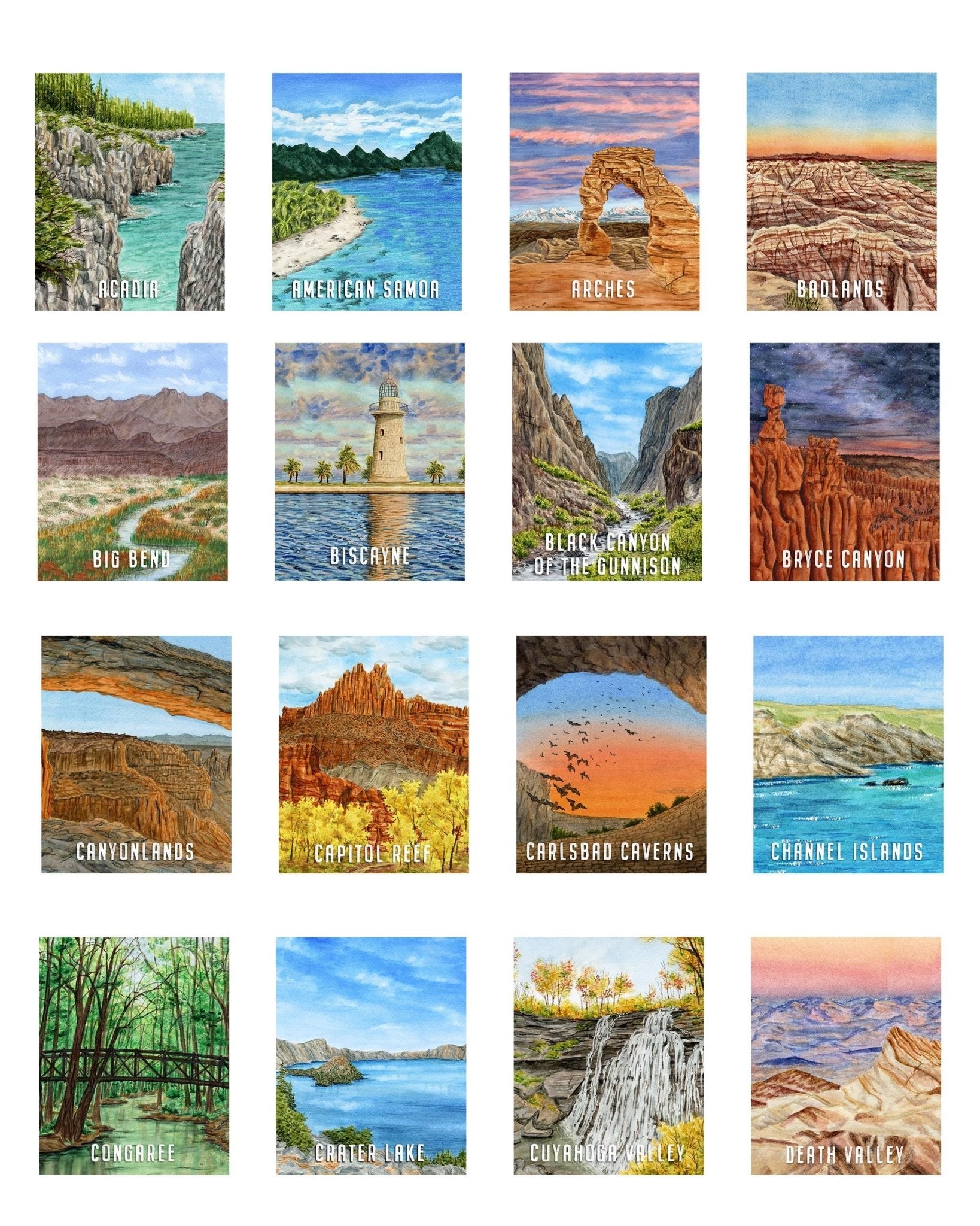 Watercolor National Park Print Bundle Pacts, (Not Framed)