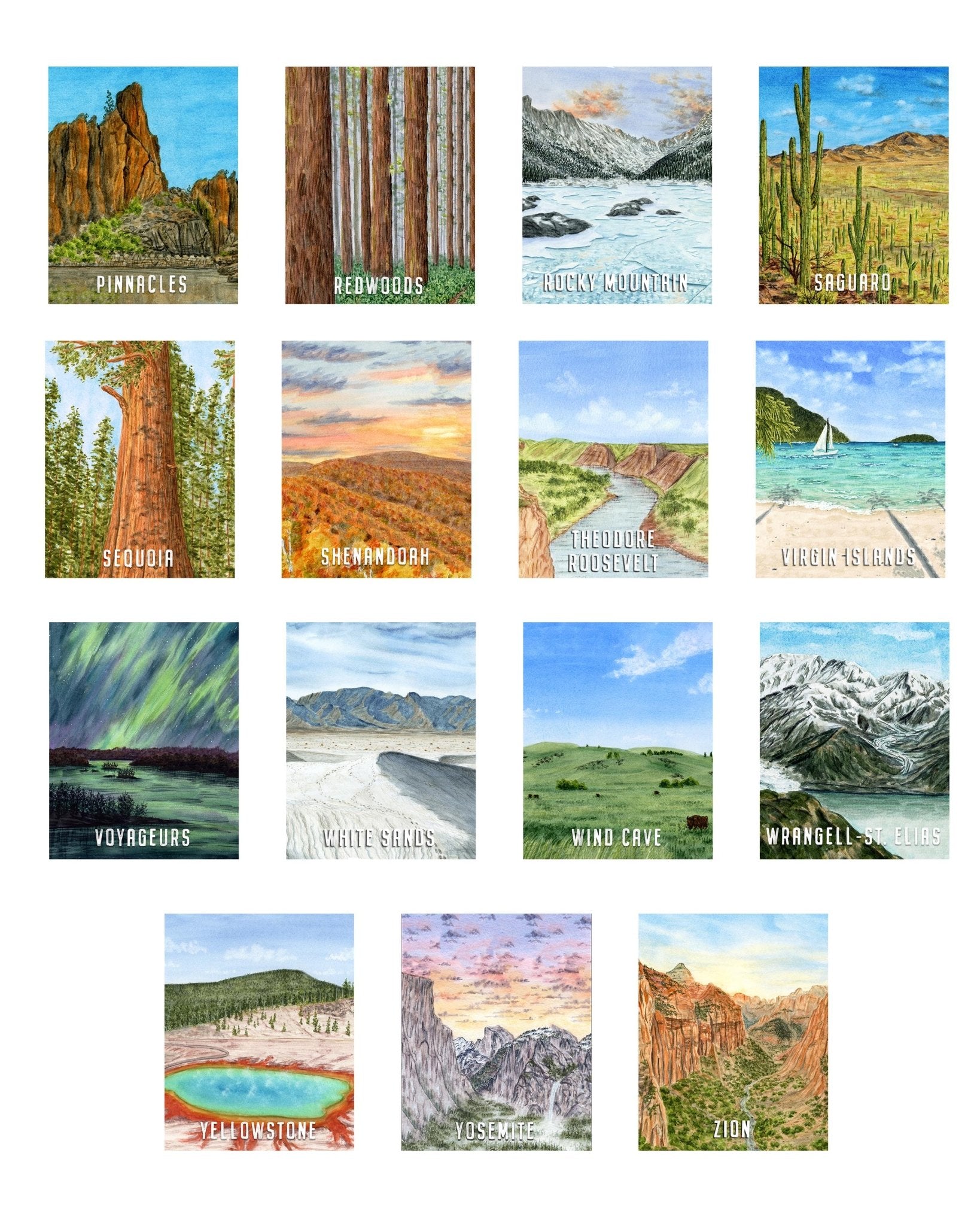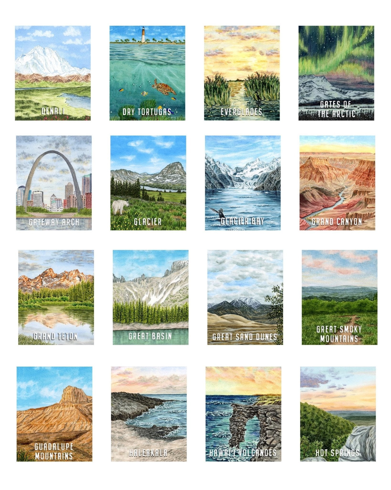 Watercolor National Park Print Bundle Pacts, (Not Framed)