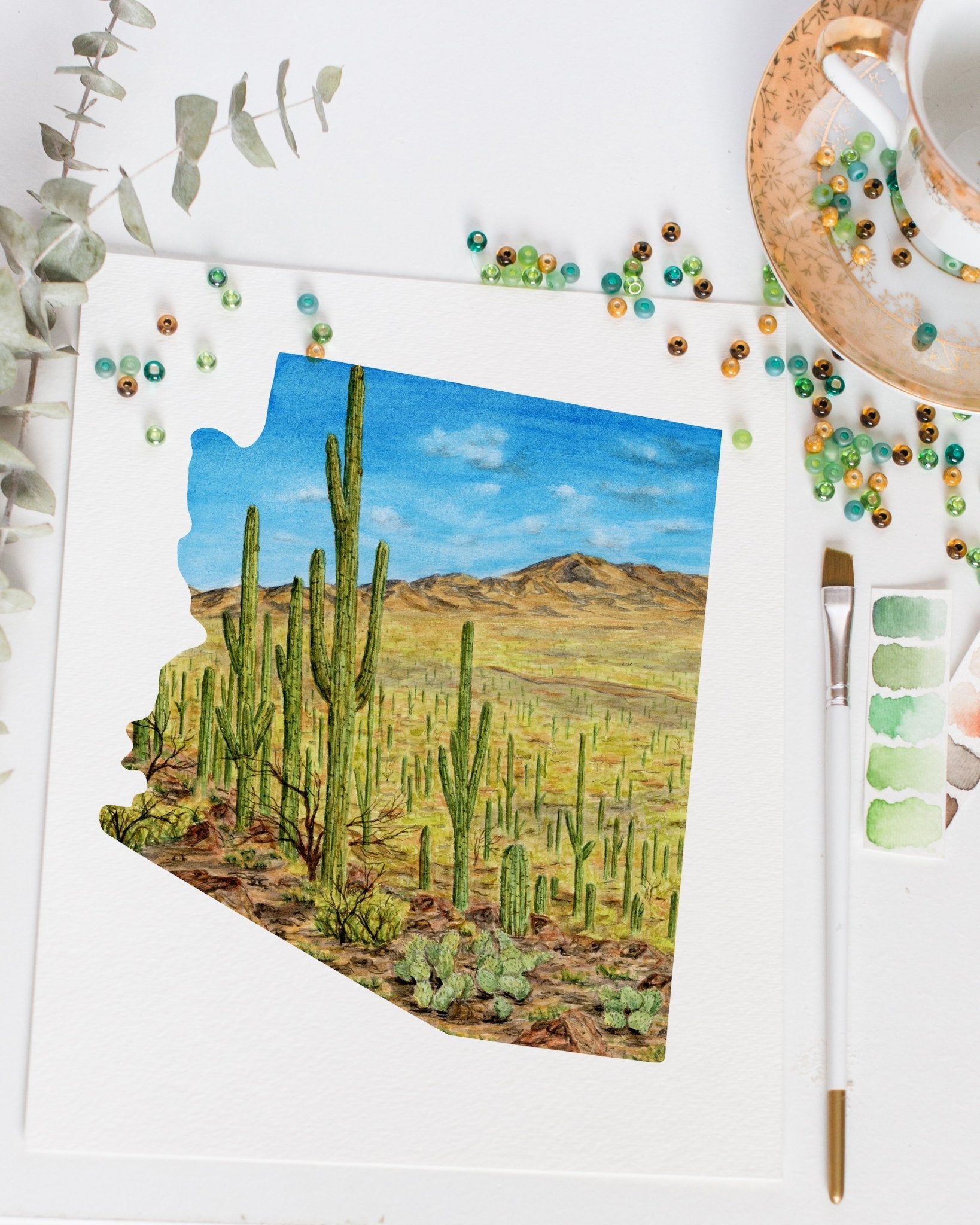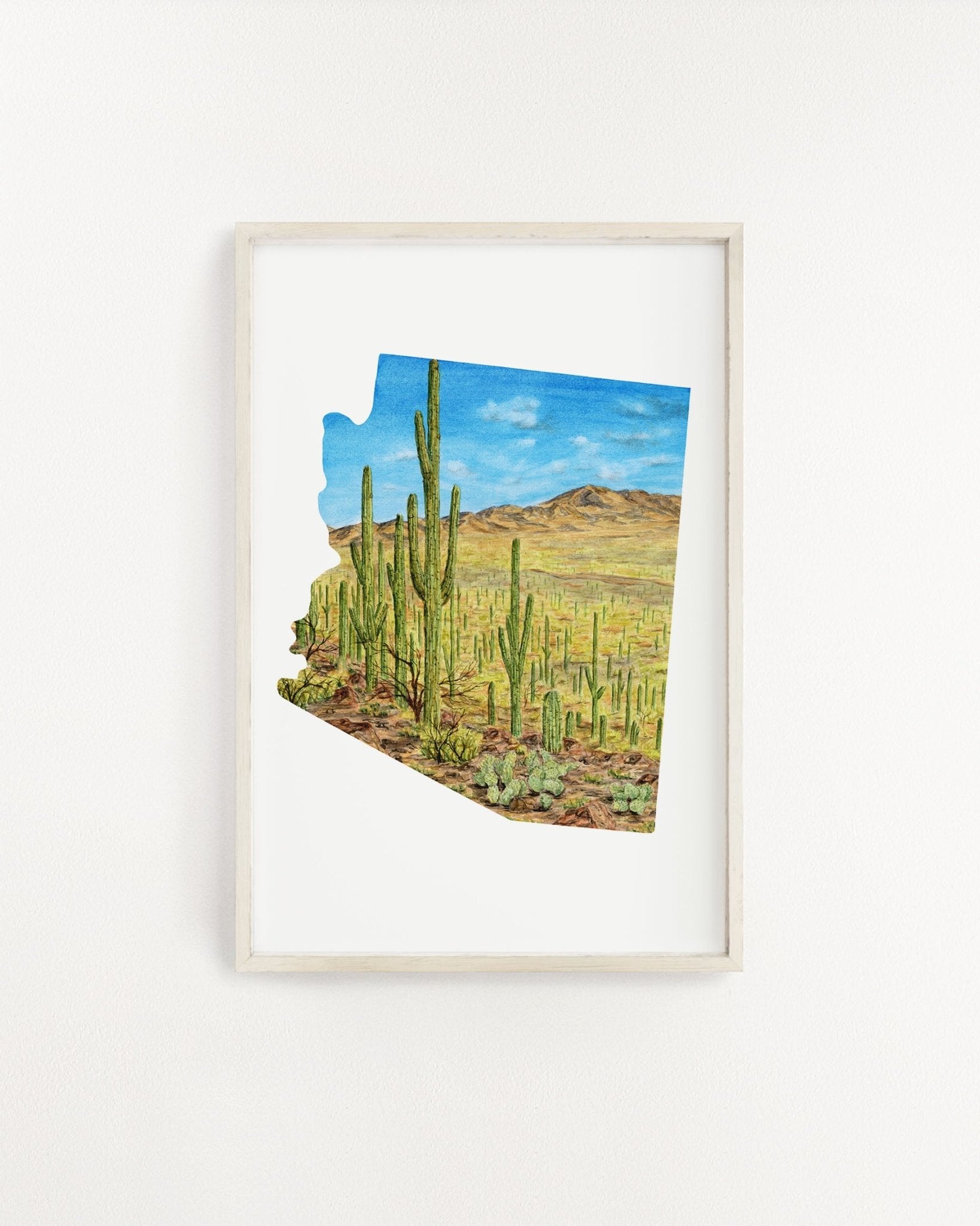 Arizona Saguaro National Park Watercolor Painting, Saguaro Cactus Print