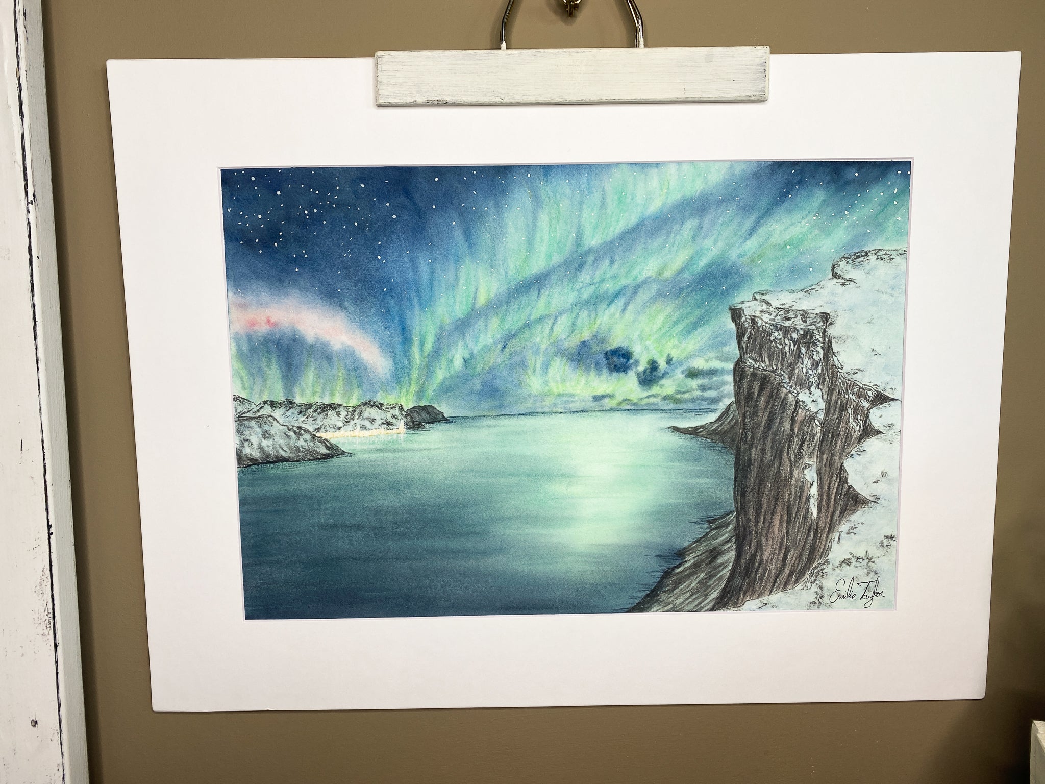 Lights over Senja Original Painting Mated to size 18x24