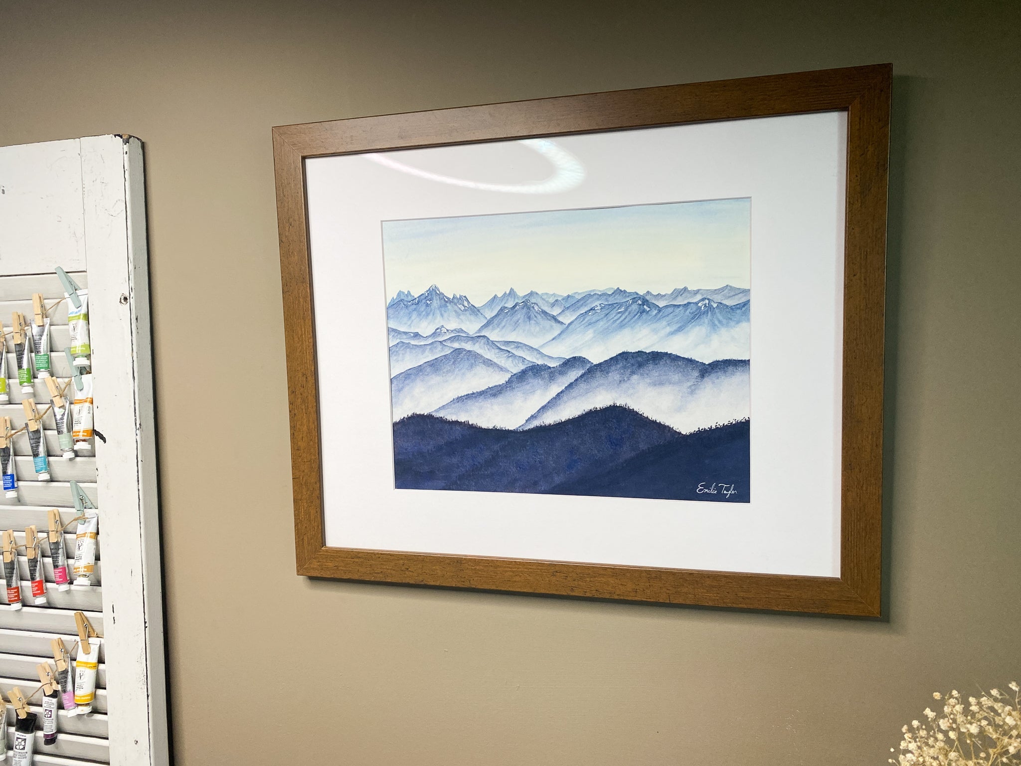 This painting is referenced off a photograph by the talented Micheal Matti (Check out his instagram) I love the simplicity of the monochromatic layers. Being up in the mountains I find a calmness I can't find many places. I can only imagine being here that morning with the misty layers dissipating as the sun came up to shine
