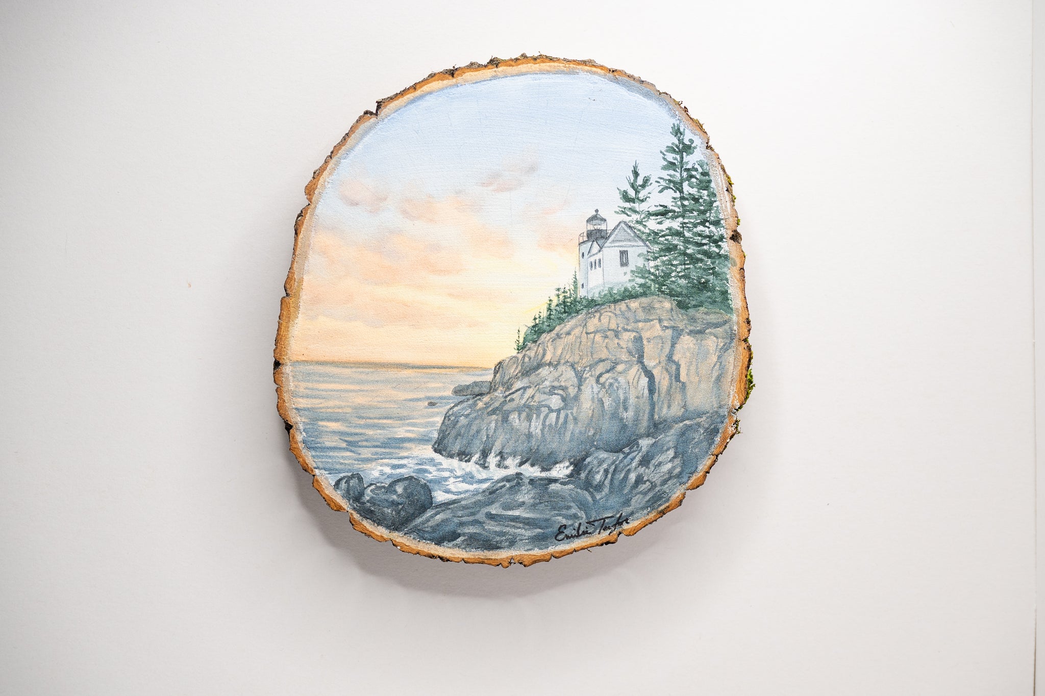 Part of the National Parks series, this is from Acadia! And it's a Medium size Portal 7-8" This Painting has some natural wood grain lines visible in photo 5 that give it character.