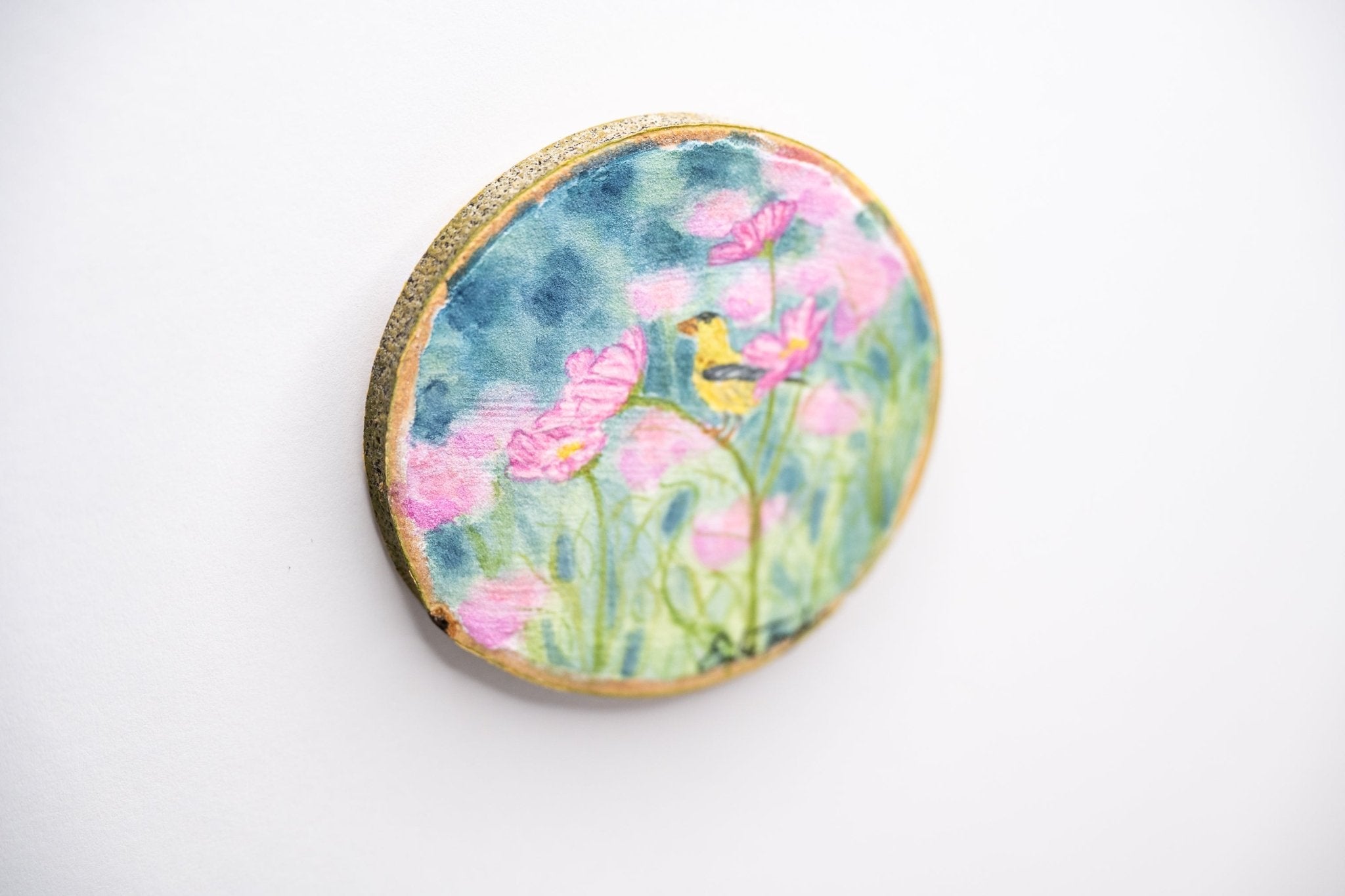 A close up bird and flowers. Such a fun add to the collection! When ever I see Yellow Finch I always call them wittle yellow birds