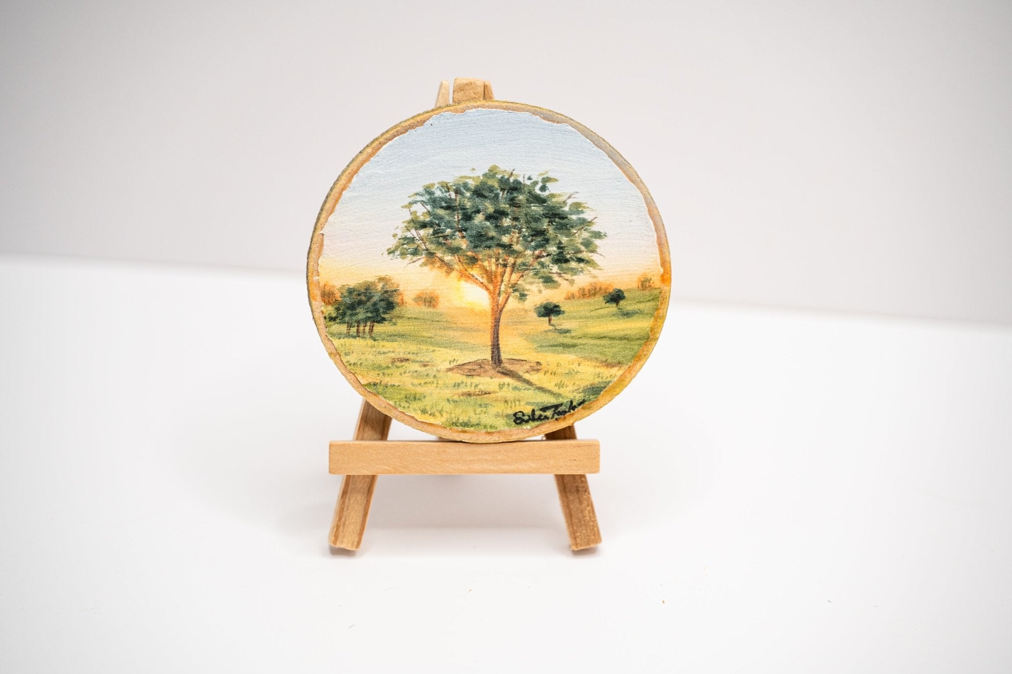Float back hanging is the new standard but we can add a string loop to hang the old way. (Please leave a note if you want that) Also, check out the easel listing to add on an easel Mini size only for shelf and desktop display.
