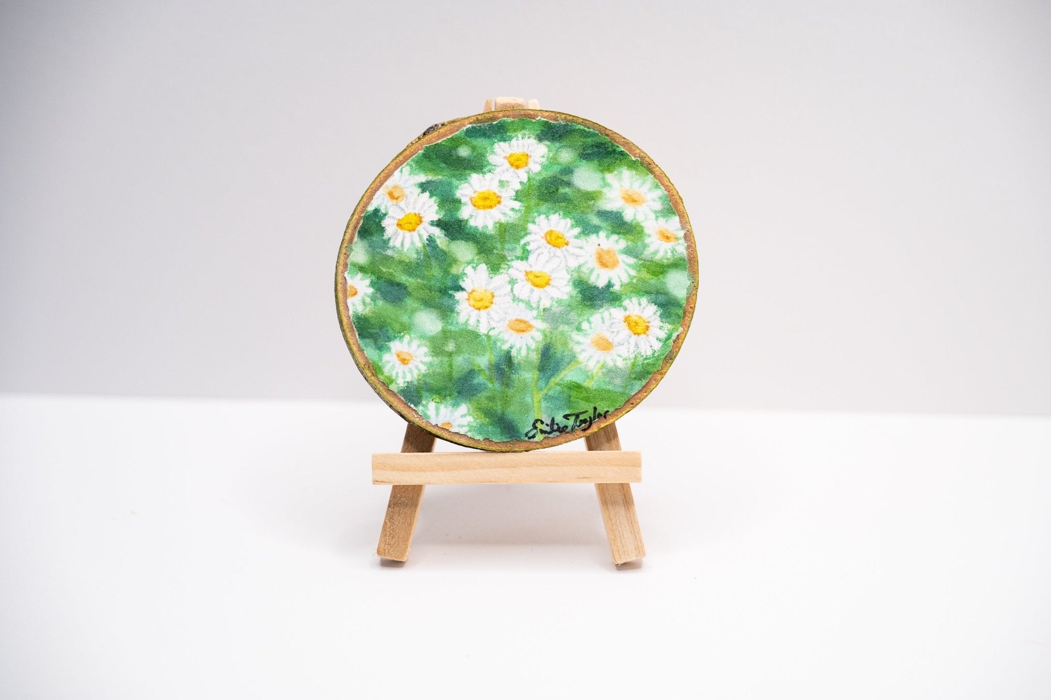 Float back hanging is the new standard but we can add a string loop to hang the old way. All check out the easel listing to add on an easel Mini size only for shelf and desktop display.