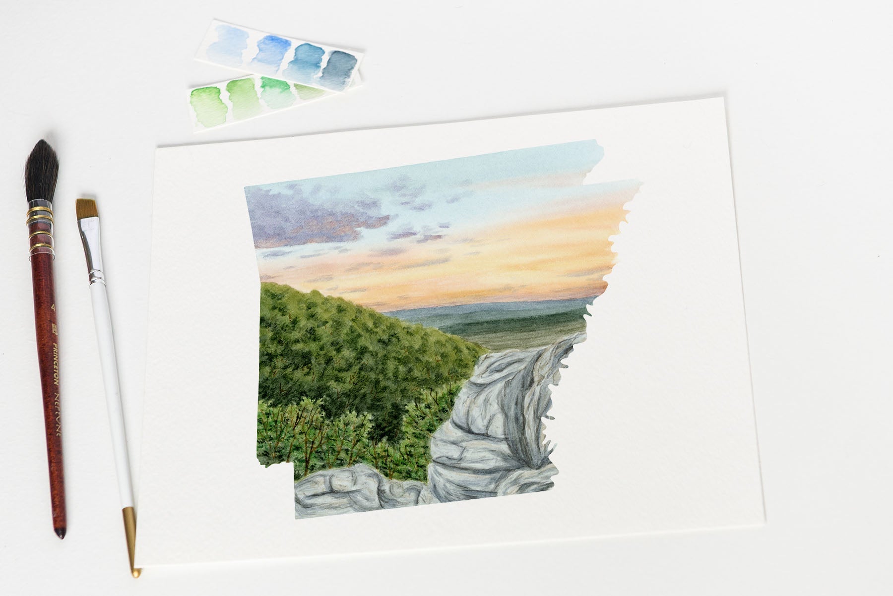 Arkansas / Hot Springs National Park or Little Hawksbill Crag Watercolor Print
