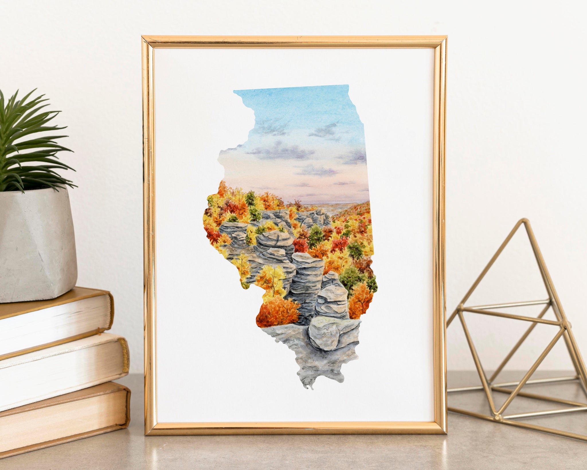 Illinois Watercolor Painting, Illinois Art, Illinois Map, Starved Rock State Park IL, French Canyon