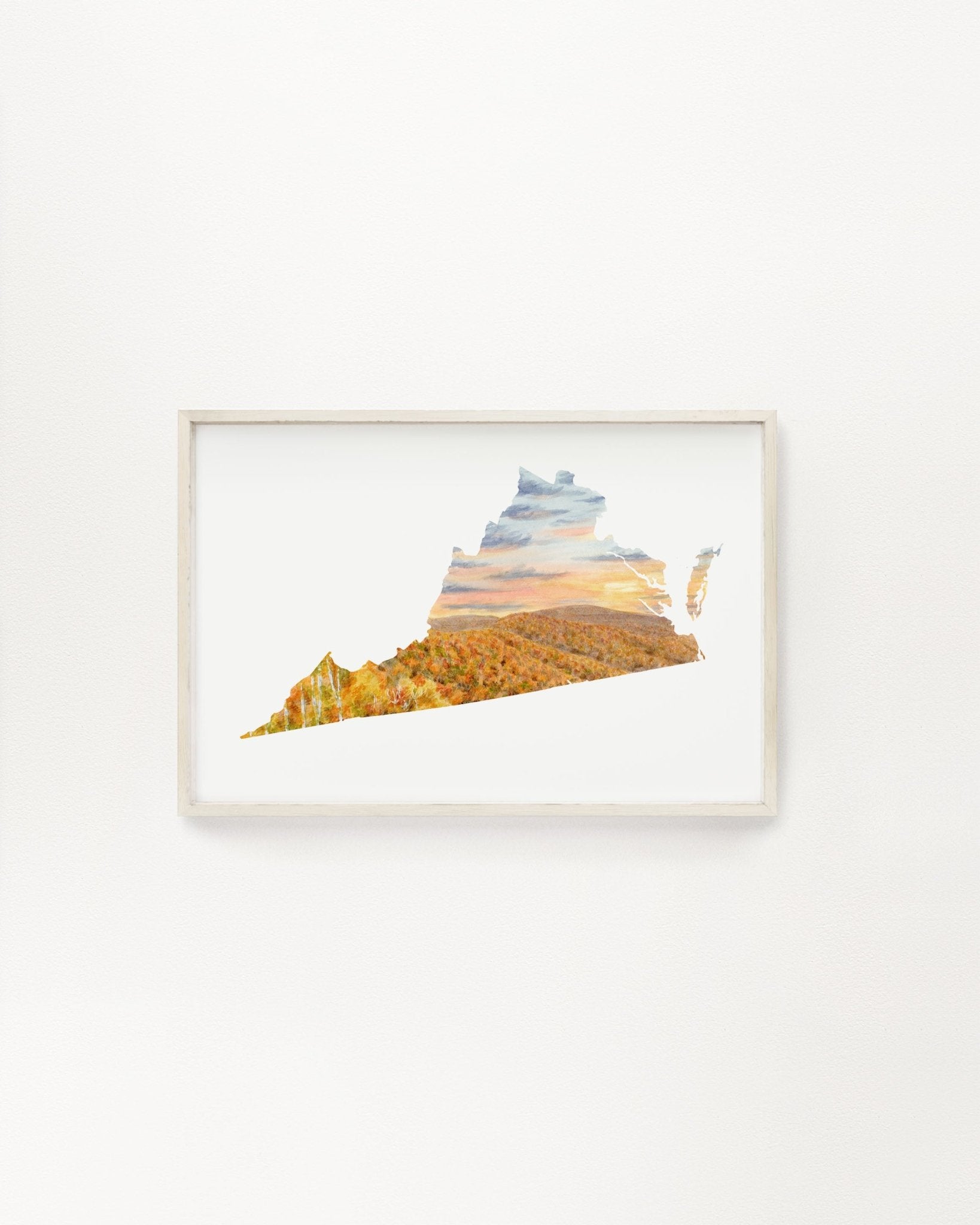 Virginia Watercolor Print, Virginia State Art, Virginia Painting,Virginia Map, Virginia Gift