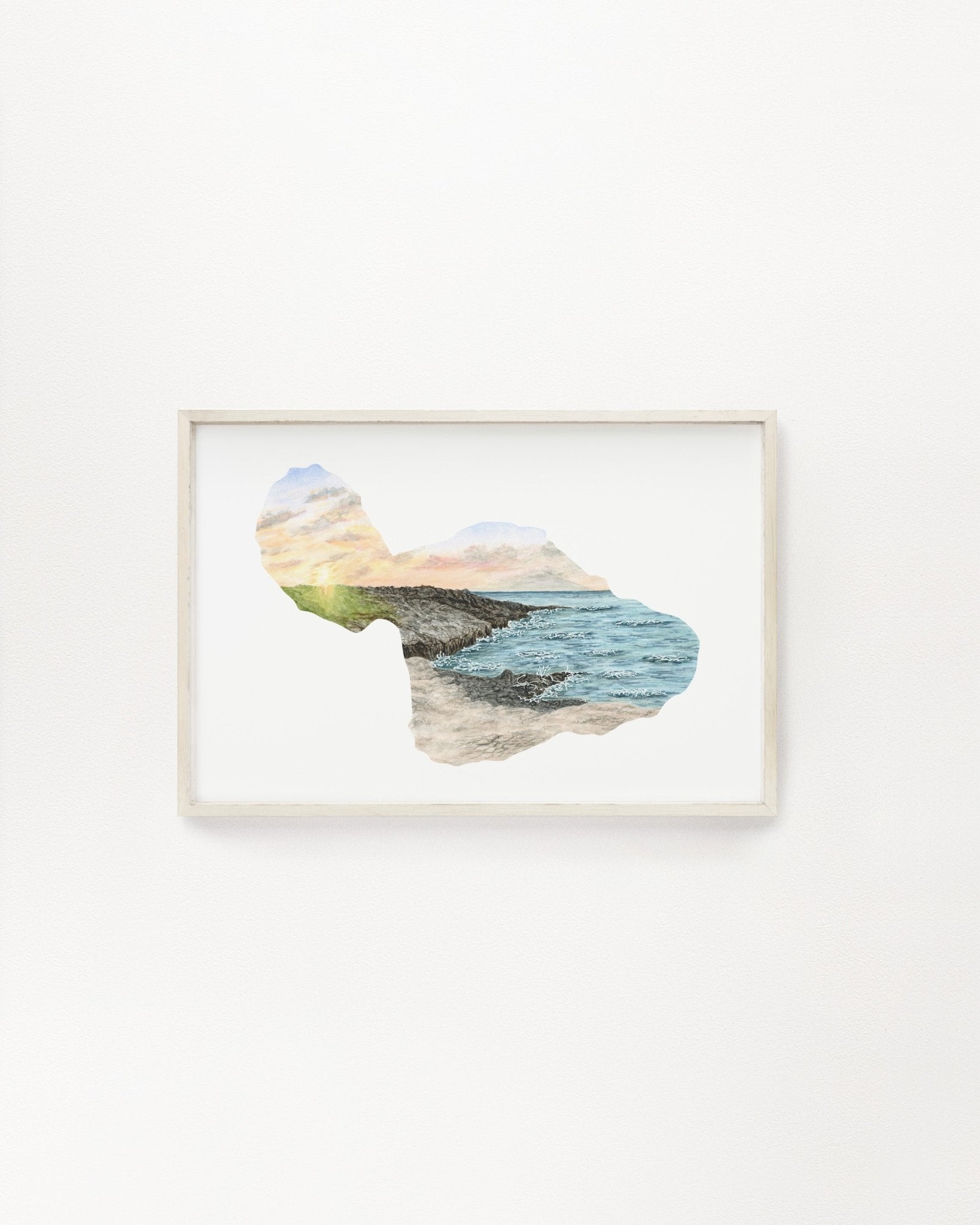 Hawaii MAUI shape print, Kipahulu coastline watercolor, Haleakalā National Park souvenir