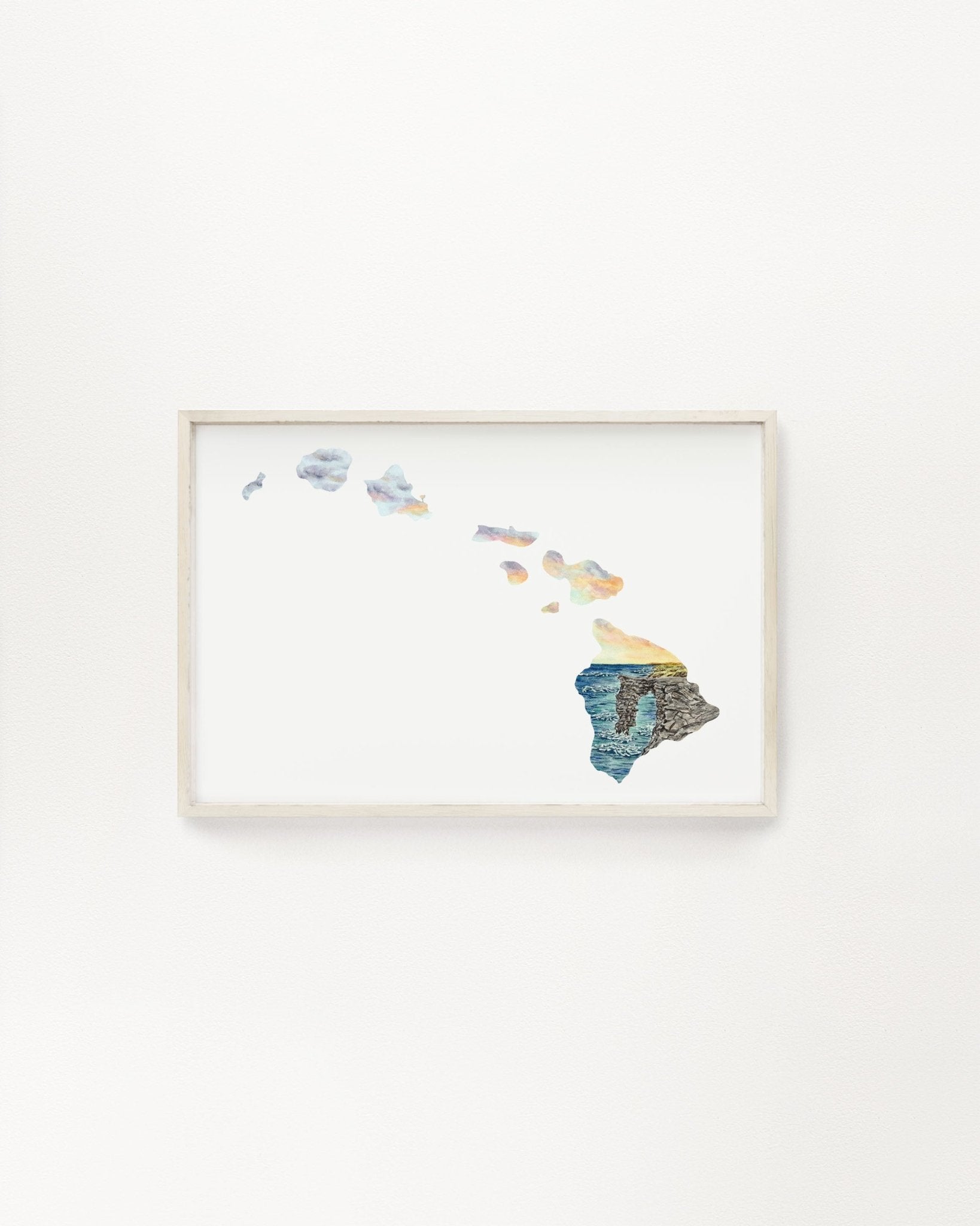 Hawaii Watercolor Painting, Hawaii State Art, Home State Print, Hawaii Souvenir, Hawaii Map Art