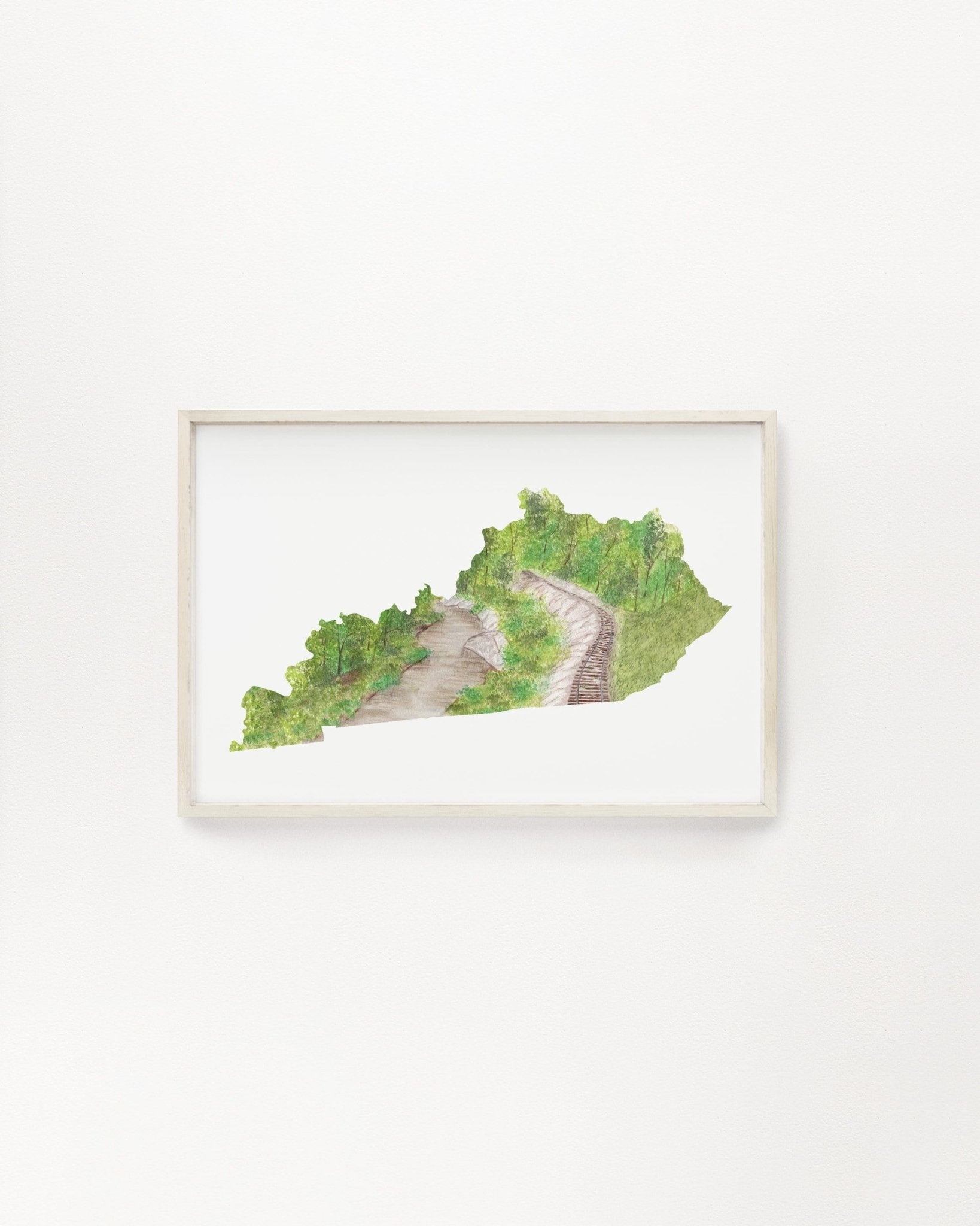 Kentucky Watercolor Print, Mammoth Cave National Park Kentucky painting, Kentucky State art