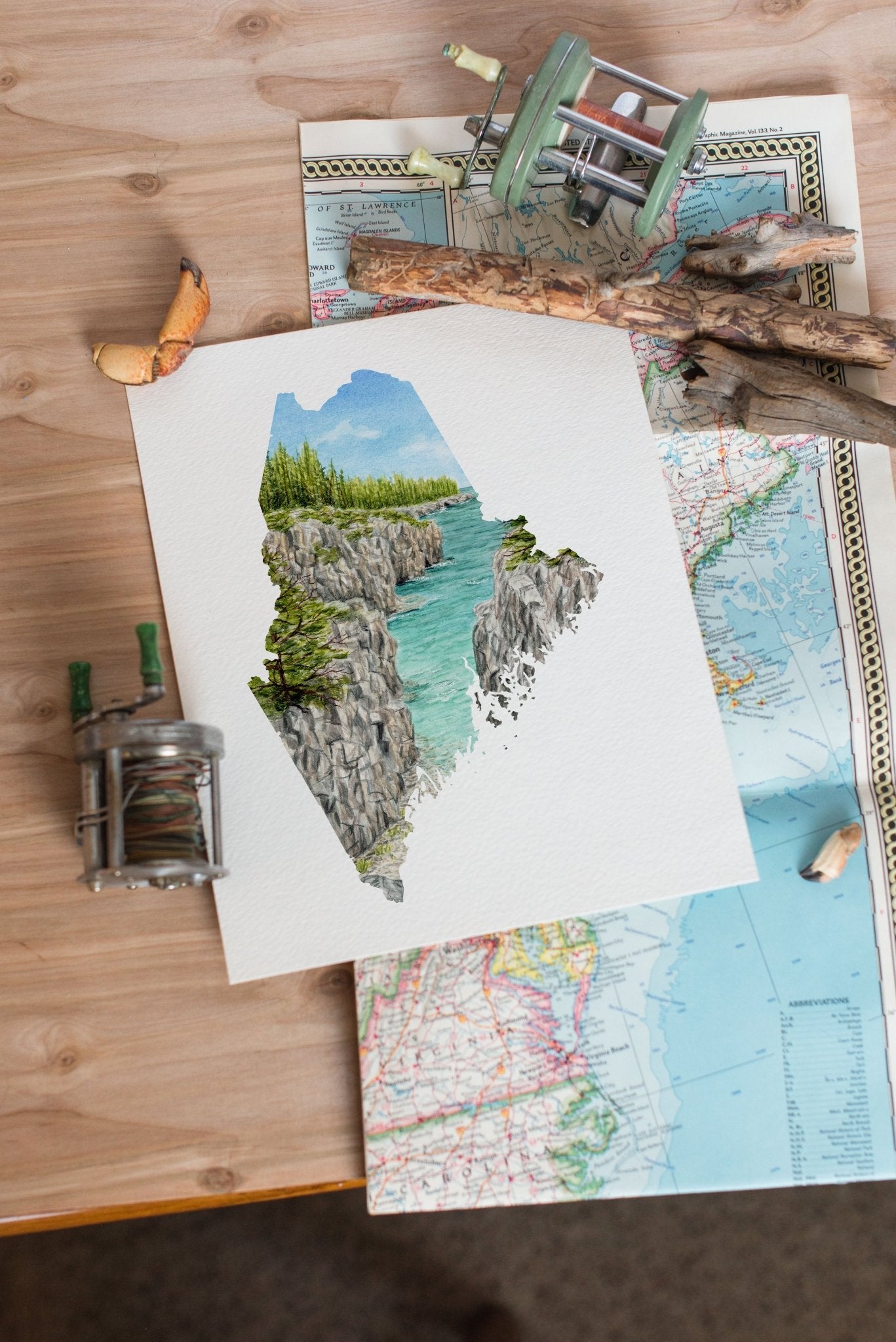 Maine Acadia National Park, Maine Watercolor Painting, Acadia National Park print