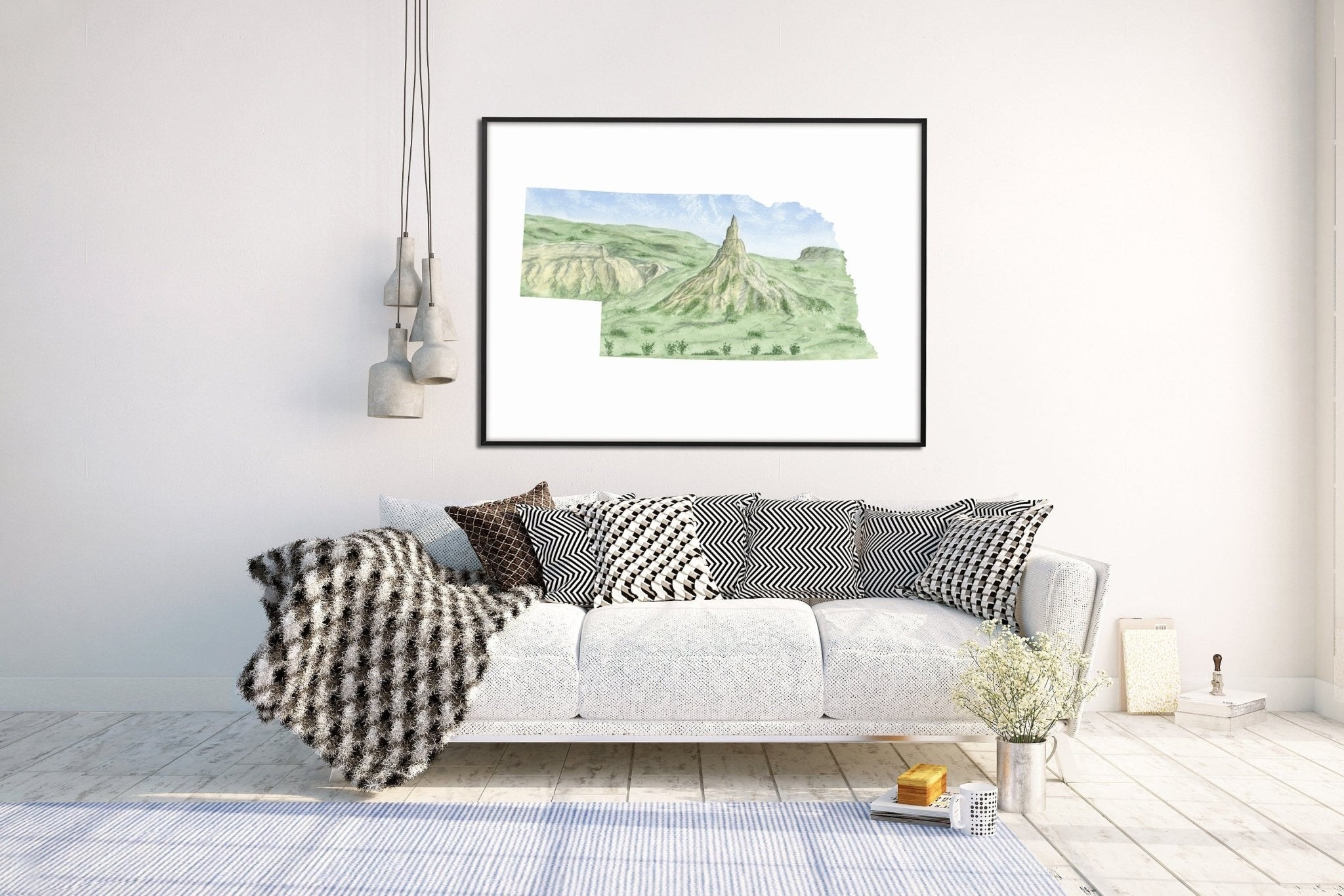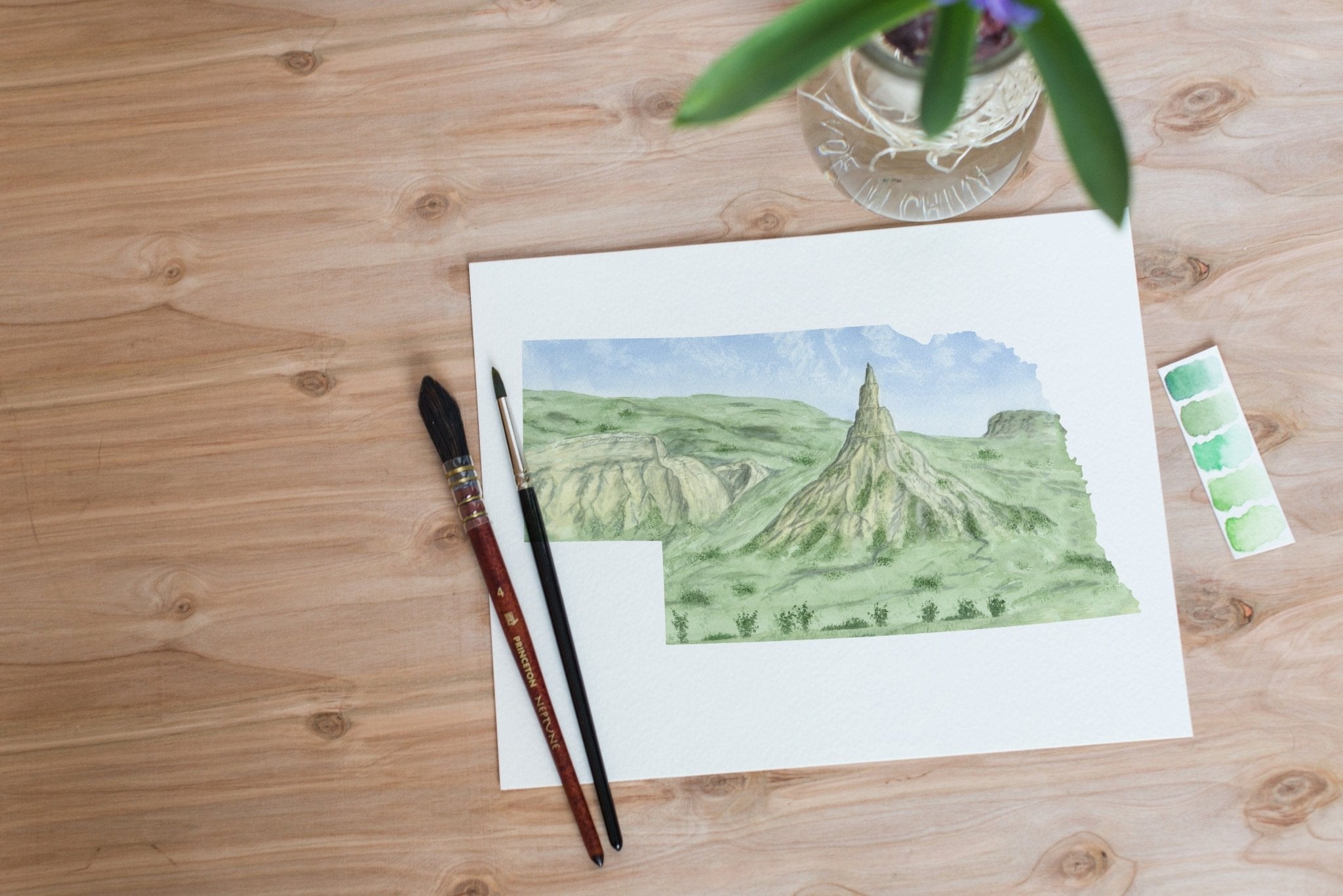 Nebraska/Chimney Rock Or Platte River Watercolor Print