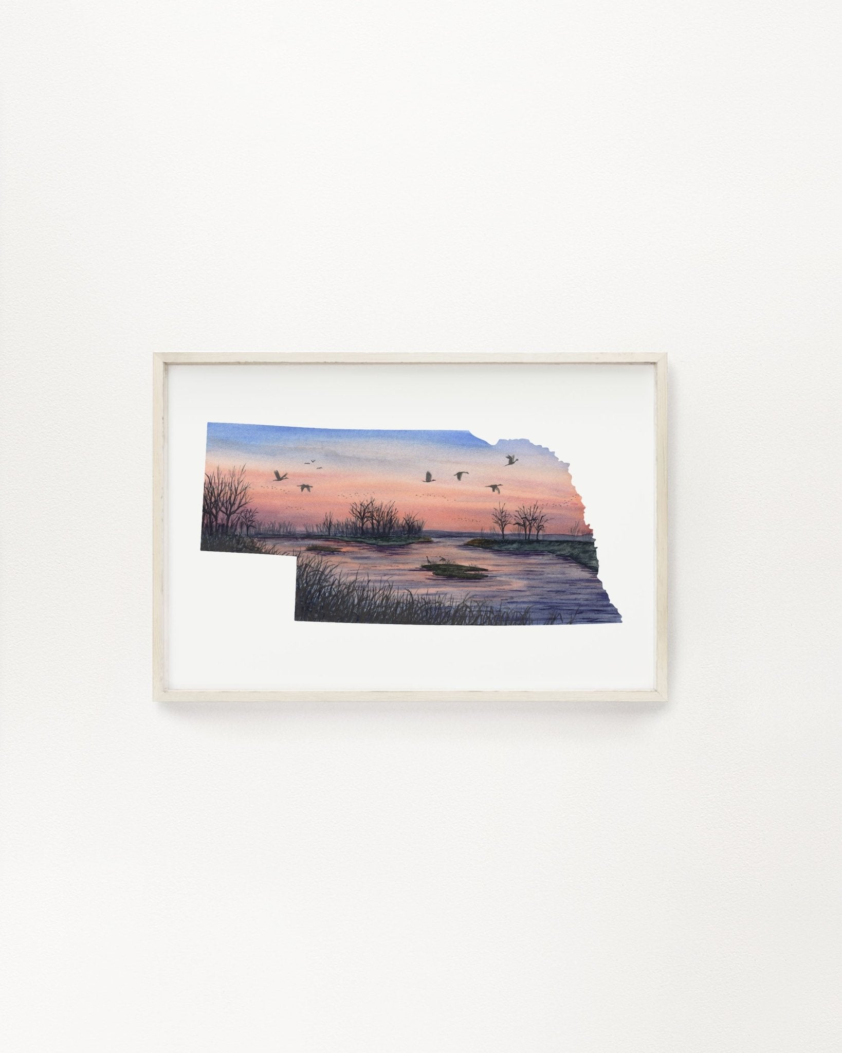 Nebraska Watercolor Painting, Nebraska State, Nebraska Map Art, Chimney Rock NE, Nebraska Poster