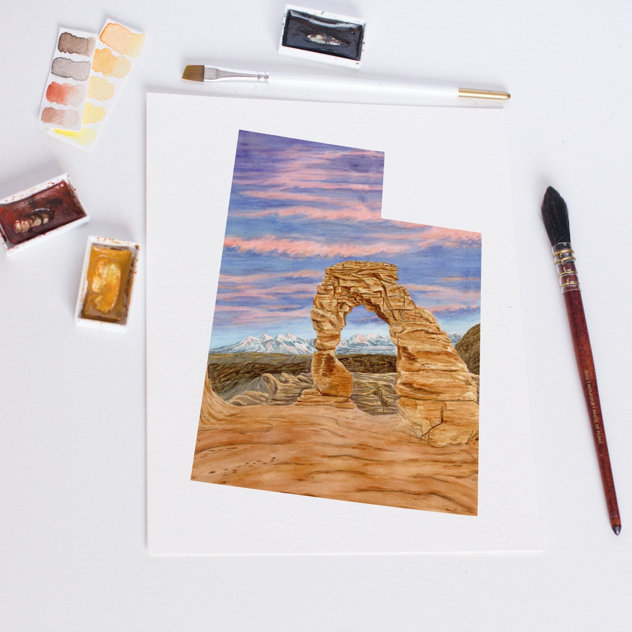 Utah Watercolor Painting, Zion National Park, Angels Landing, Utah State Art, Utah Map Print, UT Art