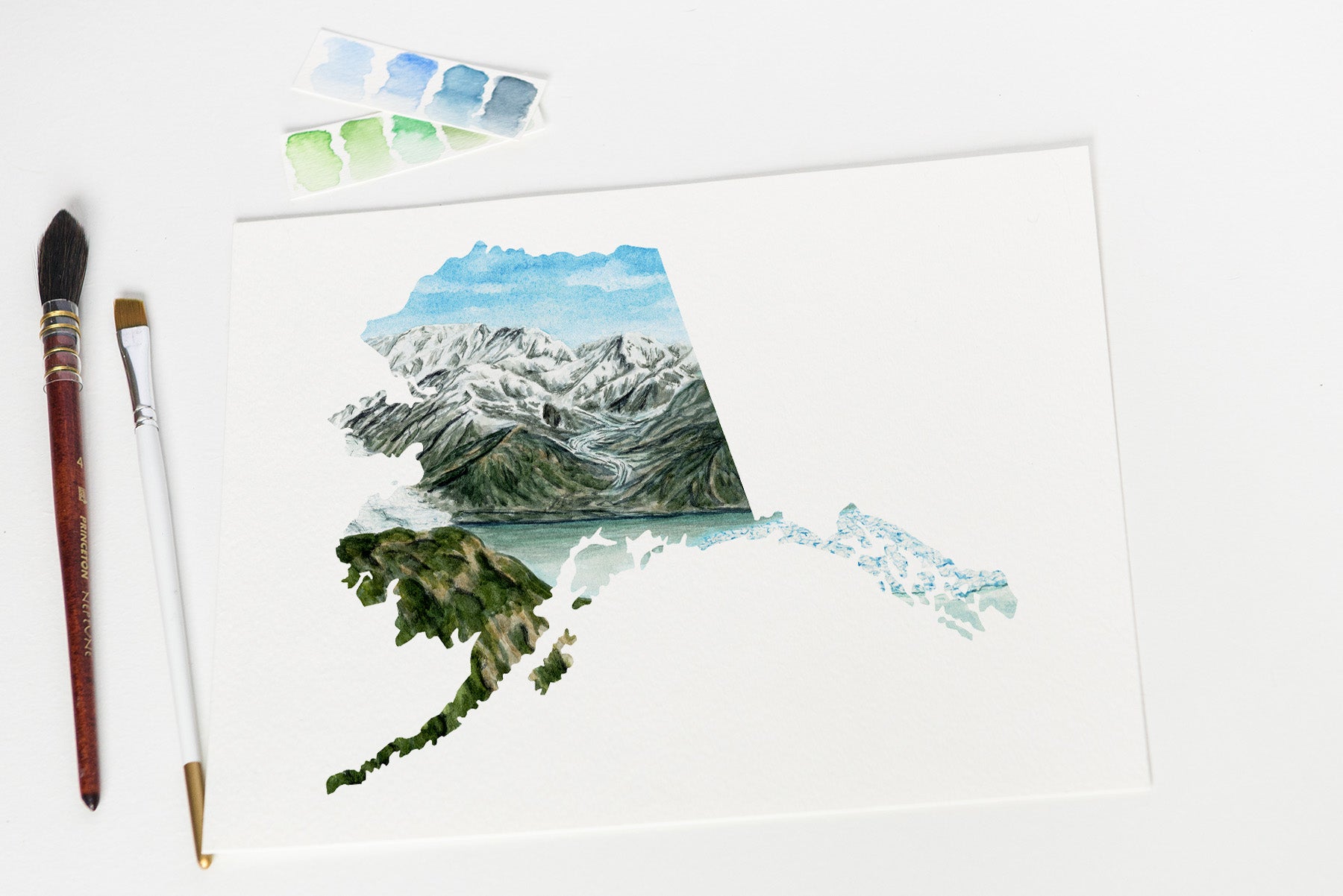 1.0 Alaska! This is a state I was kinda saving, but also trying to build up the bravery to take it on! There are so many beautiful places in Alaska it was so hard to choose just one to paint! But picking the tallest Mountain in the US seemed fitting for the mountain I had to climb!
