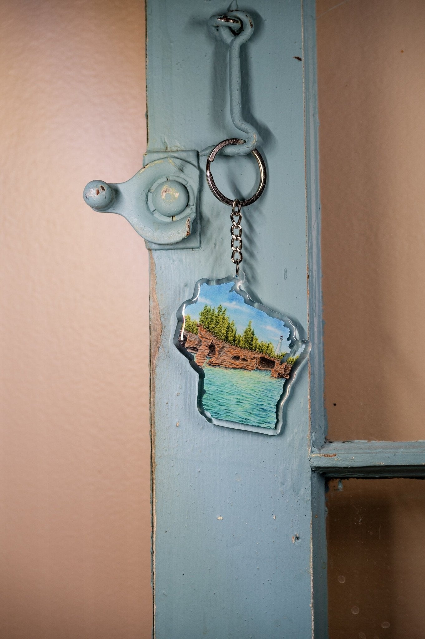 Wisconsin Apostle Islands National Shoreline Keychain, Wisconsin Keychain, Wisconsin Art Souvenir